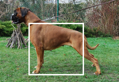 Zdjęcie psa pochodzi z Pura Poetica Boxer Kennel. Zapożyczyłam je, by pokazać na czym polega różnica i czego dotyczy taki zapis sylwetki we wzorcach ras.